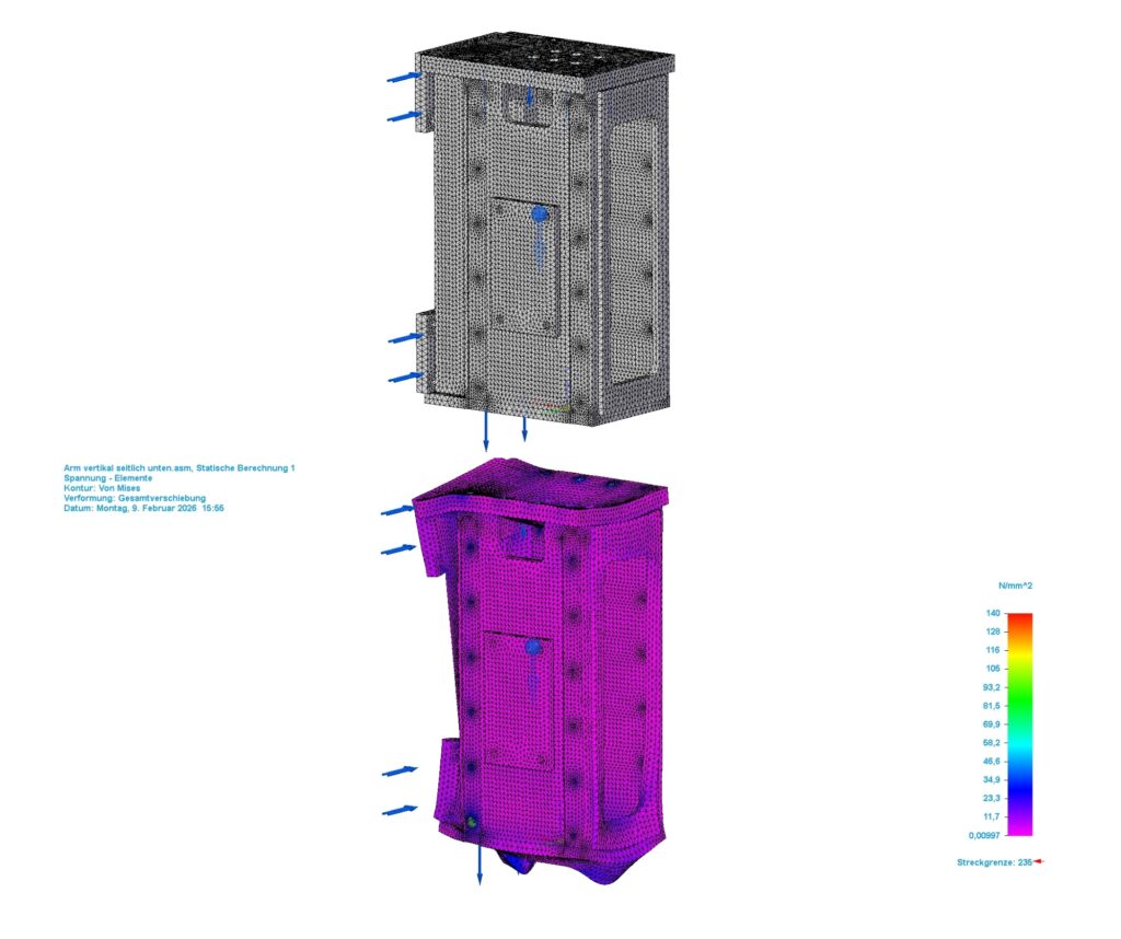 FEM-Analysen zur Spannungs-, Verformungs- und Belastungsbewertung.